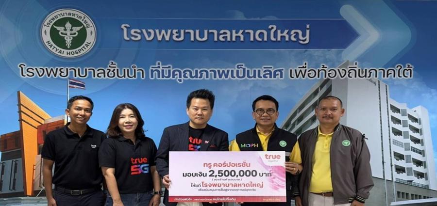 จากวิกฤตอุทกภัยที่ส่งผลกระทบต่อชีวิตความเป็นอยู่ของประชาชนและระบบบริการสาธารณะที่จำเป็นต่อการดำรงชีวิต รวมถึงด้านสาธารณสุขในจังหวัดสงขลา ทรู คอร์ปอเรชั่น เดินหน้าสานต่อภารกิจร่วมฟื้นฟูหาดใหญ่อย่างต่อเนื่อง ล่าสุด มอบเงินจำนวน 2,500,000 บาท (สองล้านห้าแสนบาท) ให้แก่ โรงพยาบาลหาดใหญ่ เพื่อเสริมความพร้อมของระบบบริการทางการแพทย์หลังเหตุการณ์อุทกภัยในจังหวัดสงขลา ซึ่งเป็นช่วงเวลาสำคัญที่โรงพยาบาลต้องเร่งฟื้นระบบให้กลับมาบริการได้เต็มศักยภาพโดยเร็ว