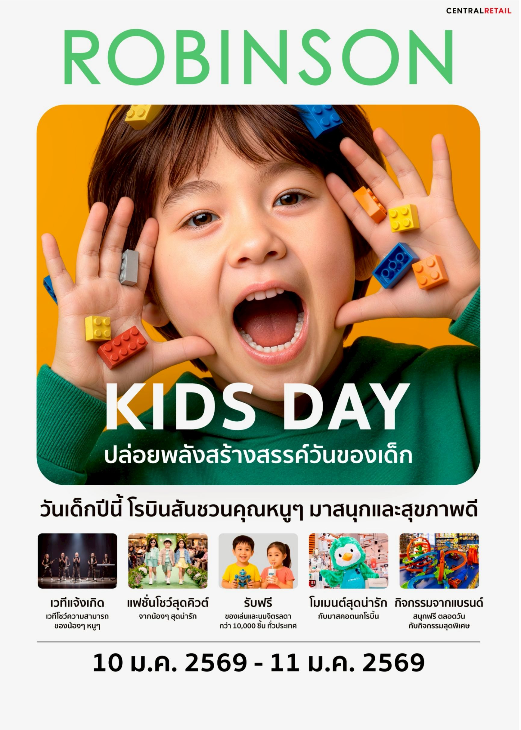 เปิดศักราชใหม่ ห้างโรบินสัน ในเครือเซ็นทรัล รีเทล ตอกย้ำการเป็น “เดสติเนชันที่สร้างความสุขในทุก ๆ วันของชีวิต”เดินหน้าเสิร์ฟความ ช้อปคุ้ม ลุ้นสนุก ผ่านซิกเนเจอร์แคมเปญ “ROBINSON SALESATION” (โรบินสัน เซลเซชัน) กับกิจกรรม “ลุ้นแหลก แจกจัดเต็ม” รวมมูลค่ากว่า 1 ล้านบาท ตั้งแต่วันที่ 5 ม.ค. 69 – 22 ม.ค. 69 คุ้มยิ่งขึ้น! กับแคมเปญ “ช้อปโรบินสันดี มีคืนเพิ่ม”รับเพิ่มคูปองมูลค่ารวม 1,500 บาท ตั้งแต่วันที่ 16 ม.ค. 69 – 28 ก.พ. 69 ที่ห้างโรบินสันทุกสาขา (ยกเว้นสาขาจังซีลอน) และทุกช่องทางการช้อปปิ้งของห้างฯ พร้อมต้อนรับวันเด็กแห่งชาติ กับแคมเปญ “ROBINSON KIDS DAY” (โรบินสัน คิดส์ เดย์) จัดเต็มกิจกรรมภายในห้าง เติมความสุขสนุกตลอดทั้งวันที่ 10 ม.ค. 69 – 11 ม.ค. 69 ที่ห้างโรบินสันสาขาที่ร่วมกิจกรรมทั่วประเทศ