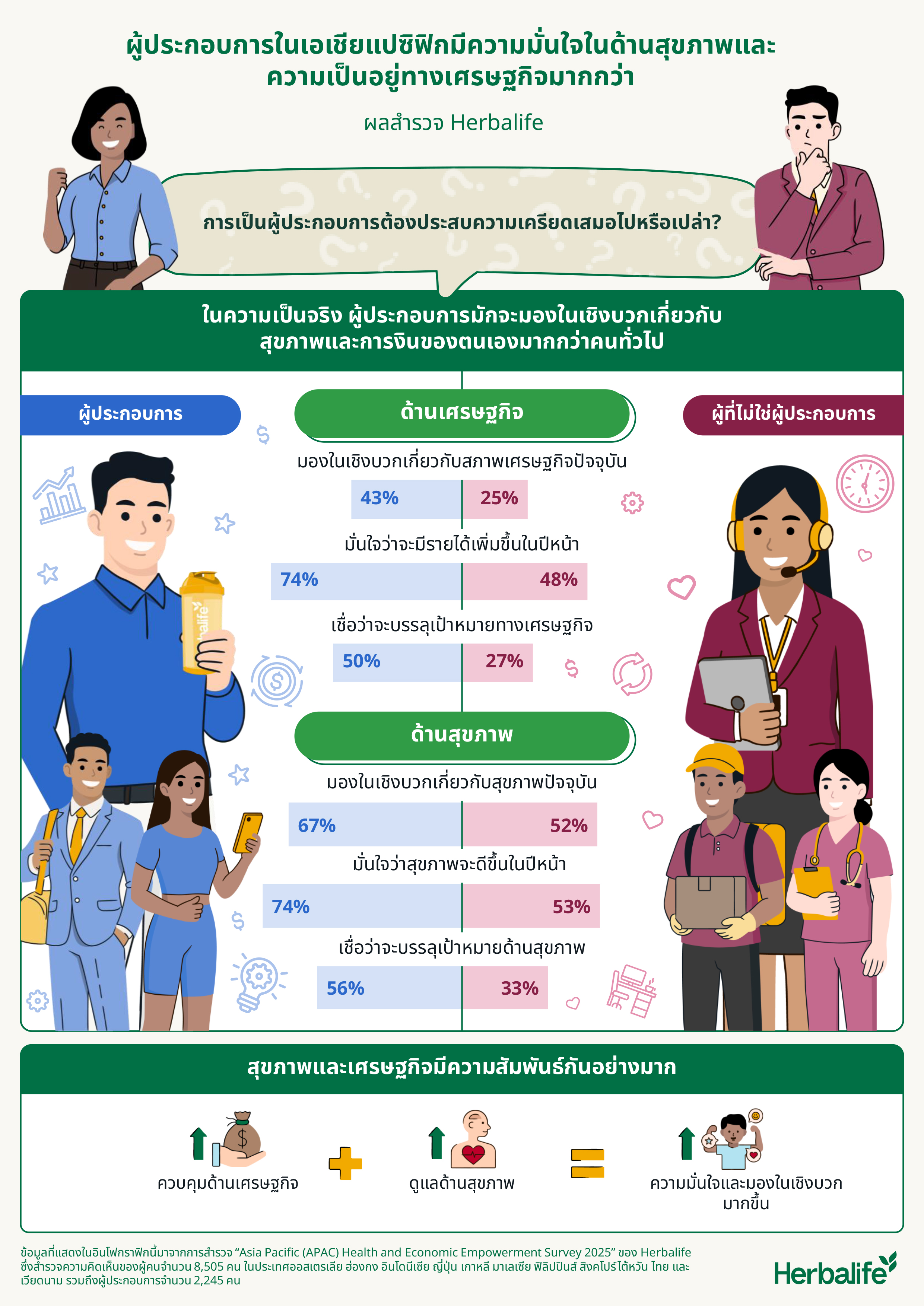 Herbalife เผยผลสำรวจล่าสุด พบ 3 ใน 4 ผู้ประกอบการในเอเชียแปซิฟิกมองบวก คาดธุรกิจโต เชื่อมั่นทิศทางเศรษฐกิจขาขึ้นปี 2569